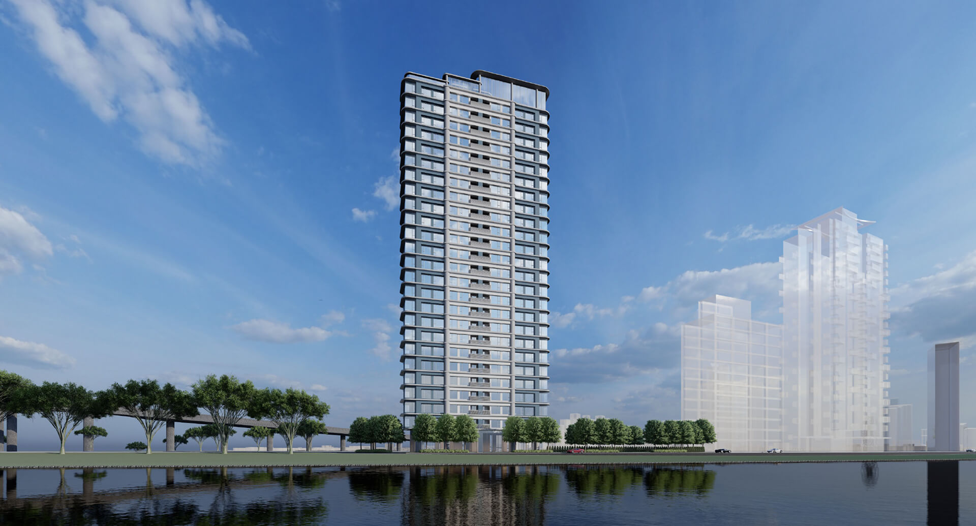 潤泰新洲美為希⼤與潤泰的第二合作案,坐擁永久棟距的開闊視野與淡⽔基隆河岸景觀, 遠眺 101 天際線,近倚河岸第一排。本案預計於 2026 年正式公開銷售, 總銷規模預估達 80 億元,將成為區域內最經典的水岸名邸。